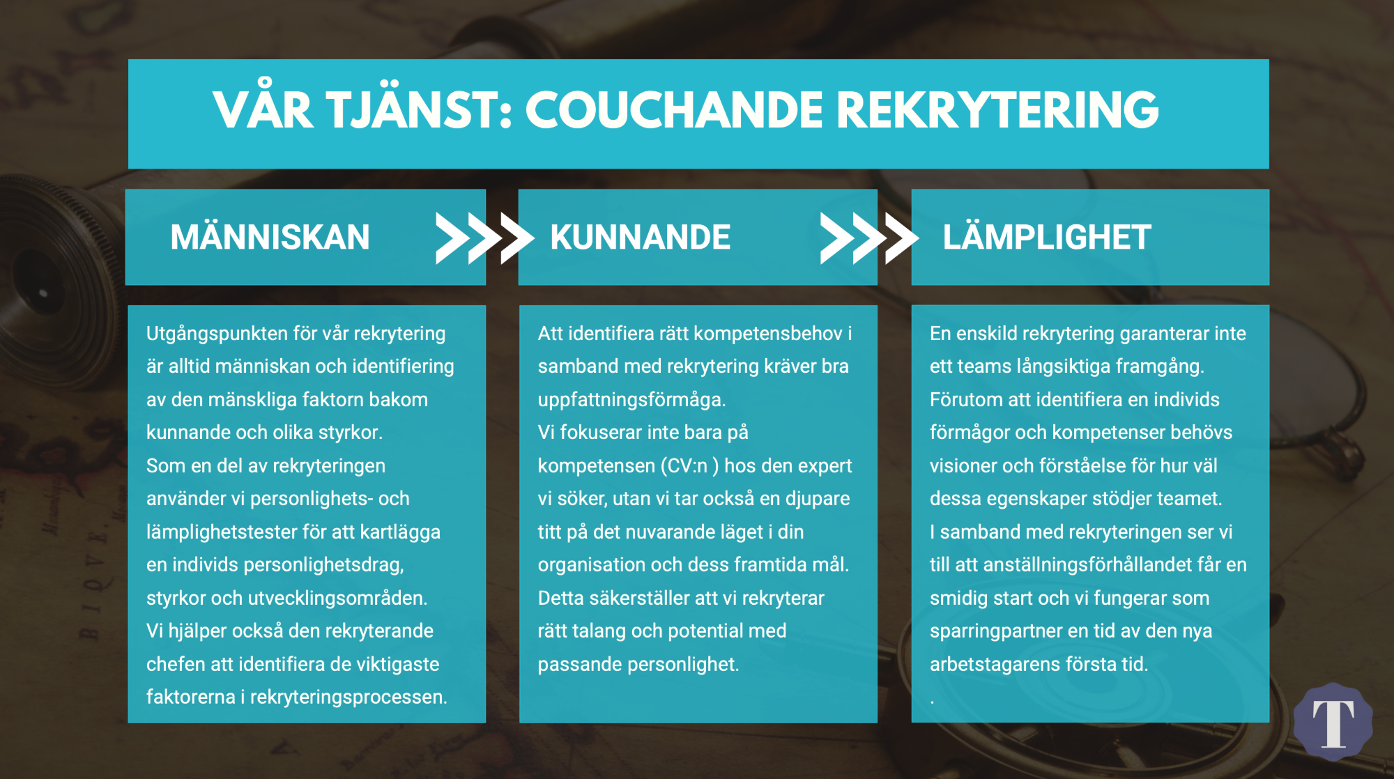 Rekryteringsprocessen är mycket mer än att anställa en ny medarbetare. Vi sparrar dig i processens olika skeden. Med vårt coachande förhållningssätt som grund diskuterar vi konfidentiellt och konstruktivt, eftersom rekrytering inte bara bygger på lycka.
